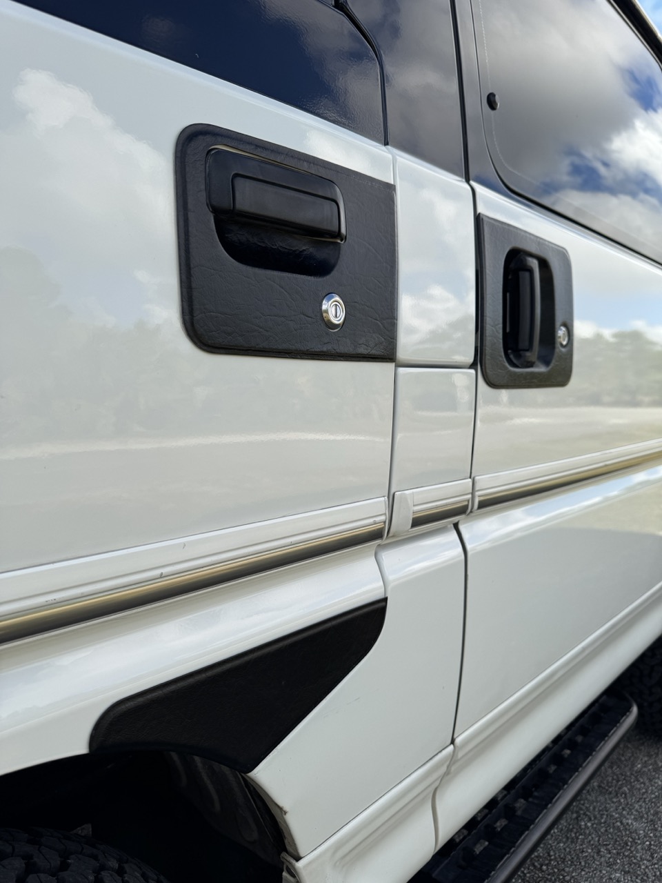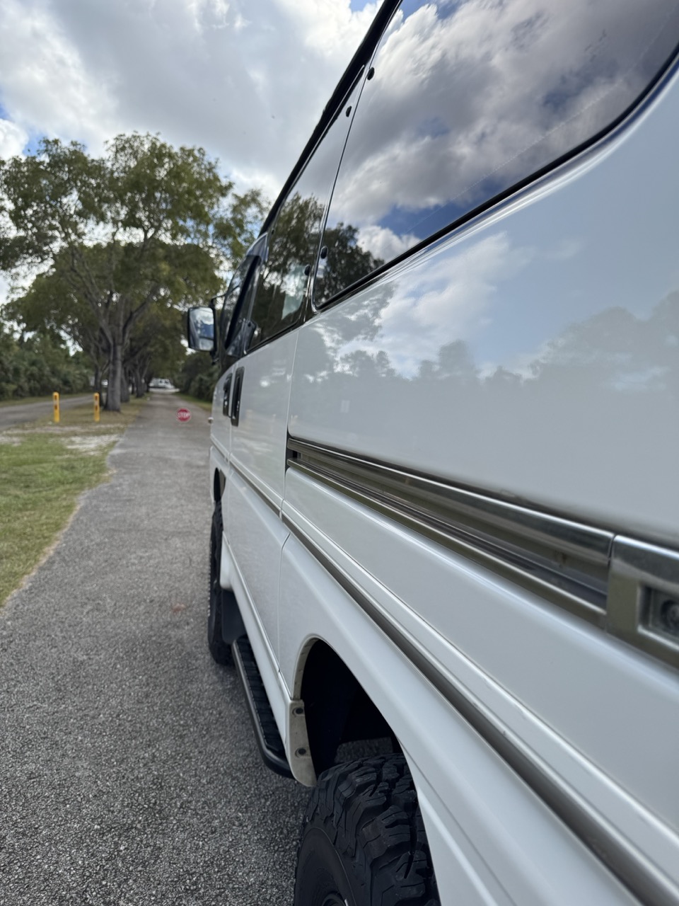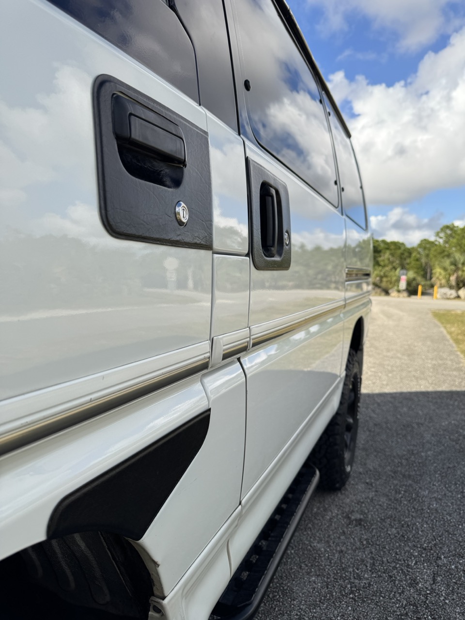 The exterior presentation is equally impressive, with the paint in top condition throughout—showing no fading or flaking just about anywhere. The finish presents extremely well, maintaining strong gloss and clarity that highlight how well this Delica has been cared for over the years.