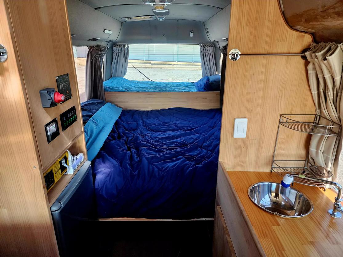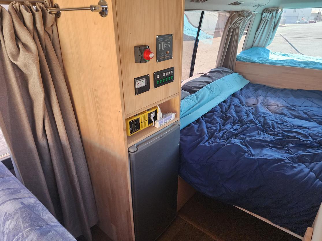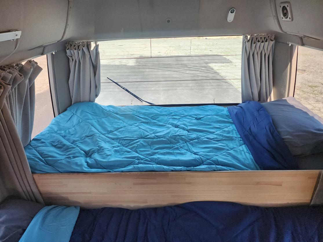 -Dual rear beds (lower is two twin mattresses, upper is a single twin mattress)