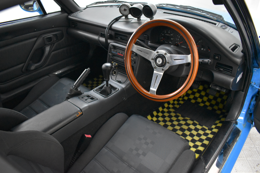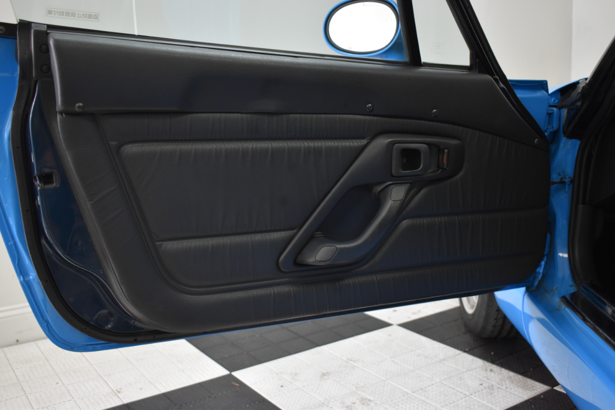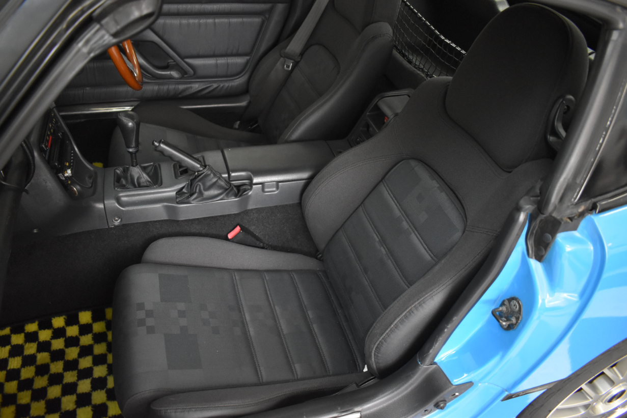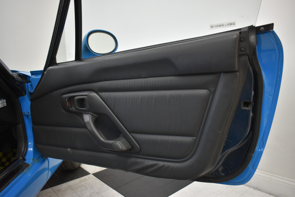 This 1993 Suzuki Cappuccino is painted in light blue with black/grey interior. The car has a K6A inline three-cylinder turbo mated to a five-speed manual transmission. It is running on 15″ SSR wheels, KYB New SR Special Shocks/Struts & Springs, aftermarket mandrel-bent Fujitsubo Exhaust, and has a Pioneer Carrozeria head unit. Cappuccinos have a removable hard top and T-tops/Targa panels.