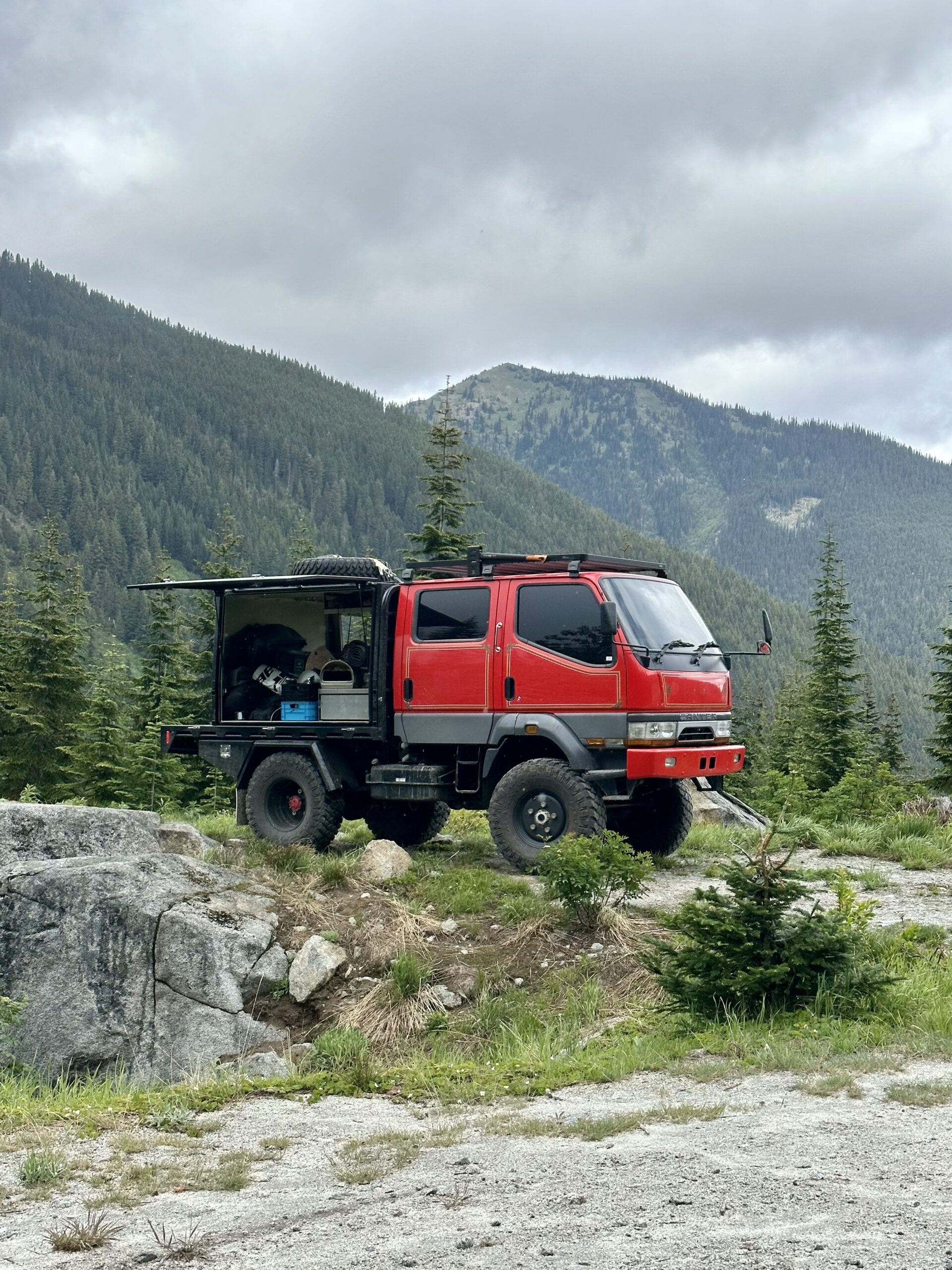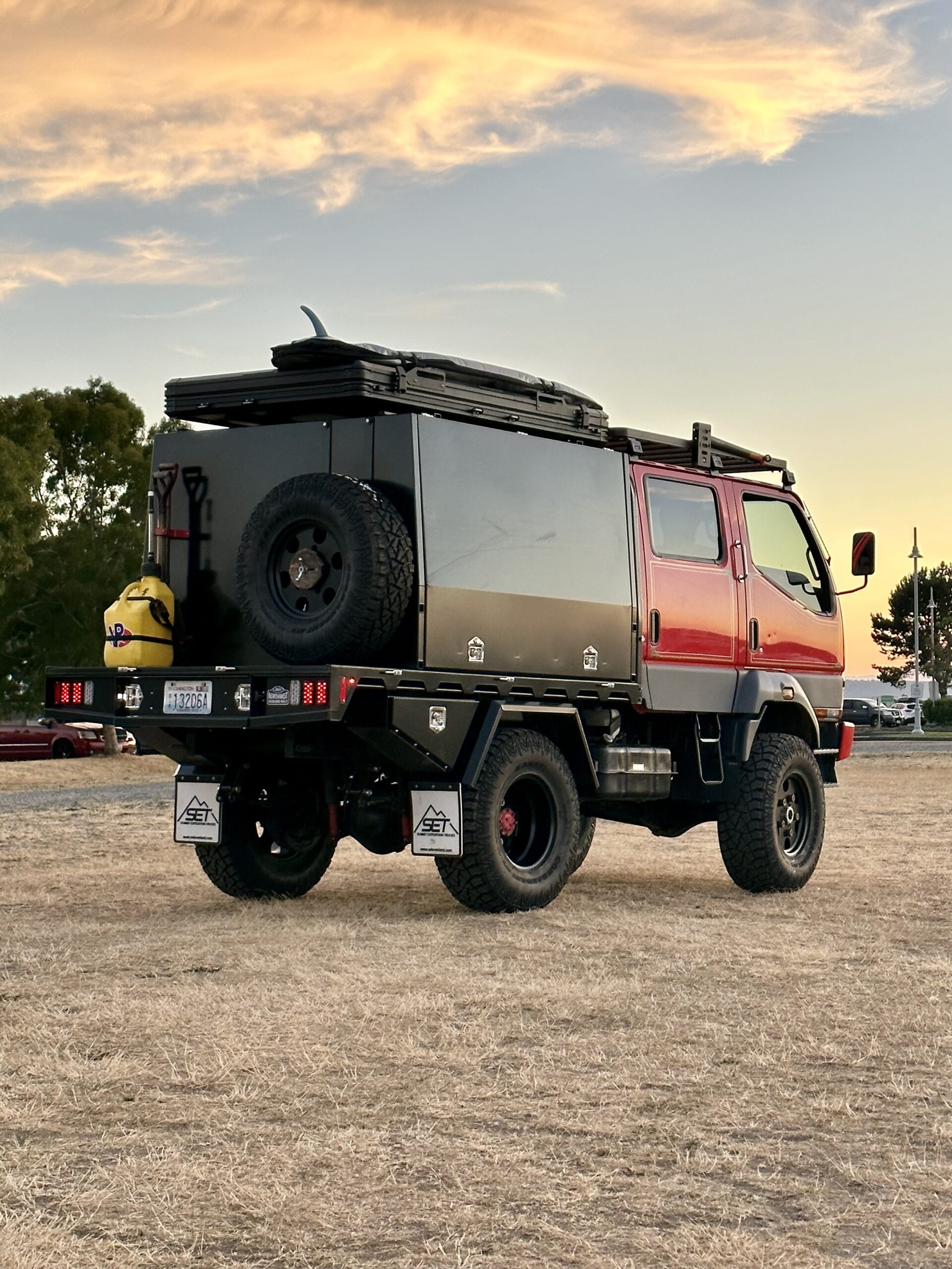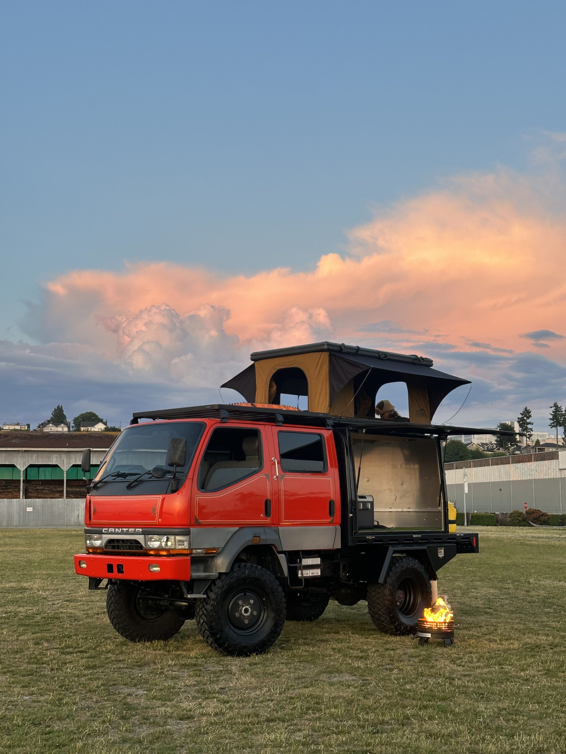 Our Mitsubishi Canter started life as a Japanese Fire truck with a small portable pump box. Its a more rare flatop version with a short 100” wheel base. We started almost a year ago at the NWORally trying to find a vendor with the ability to build an Australian inspired UteTray and Canopy that would match the Cab of the awesome Canters. We contacted Ralph at Summit Expedition Trucks and contracted initially and 8’ ute tray with bed sides knowing well enough that the Canopy was a must have and in January the construction started on the 6’ (3/4) canopy.