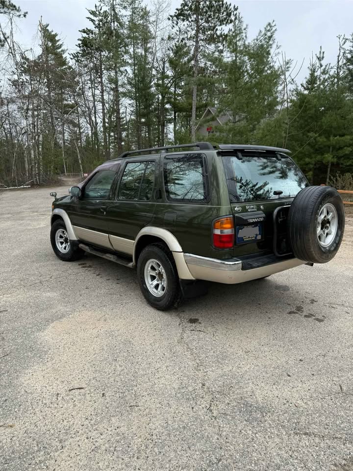 1996 Nissan Terrano Limited 4×4 2.7L diesel. Less than 100k km (under 62k miles) great shape, runs great. Not a show piece but solid. Has scratches and some superficial chrome rust. New front brakes, new tires, 4×4 works well, a/c blows cold, heat is hot.