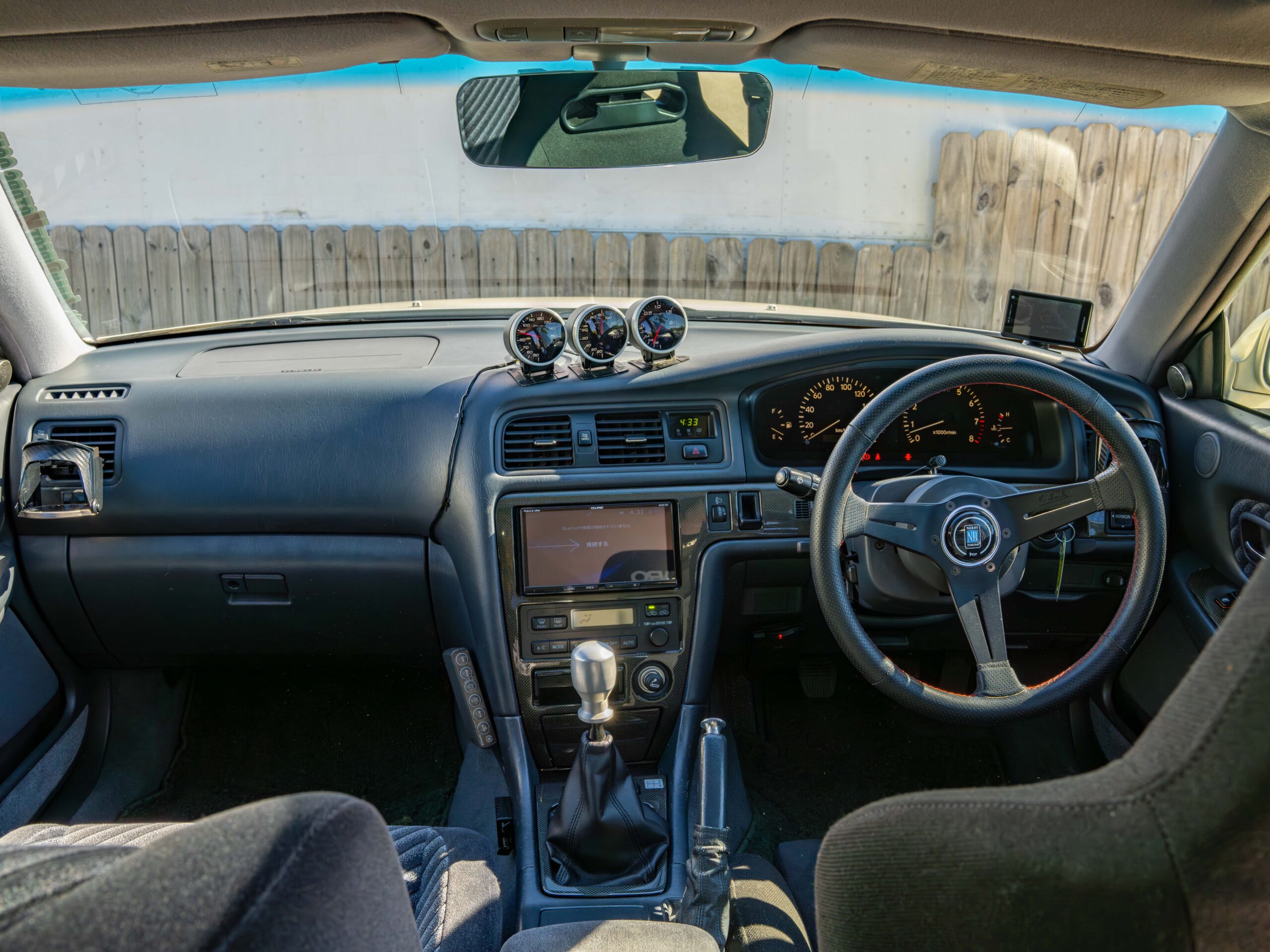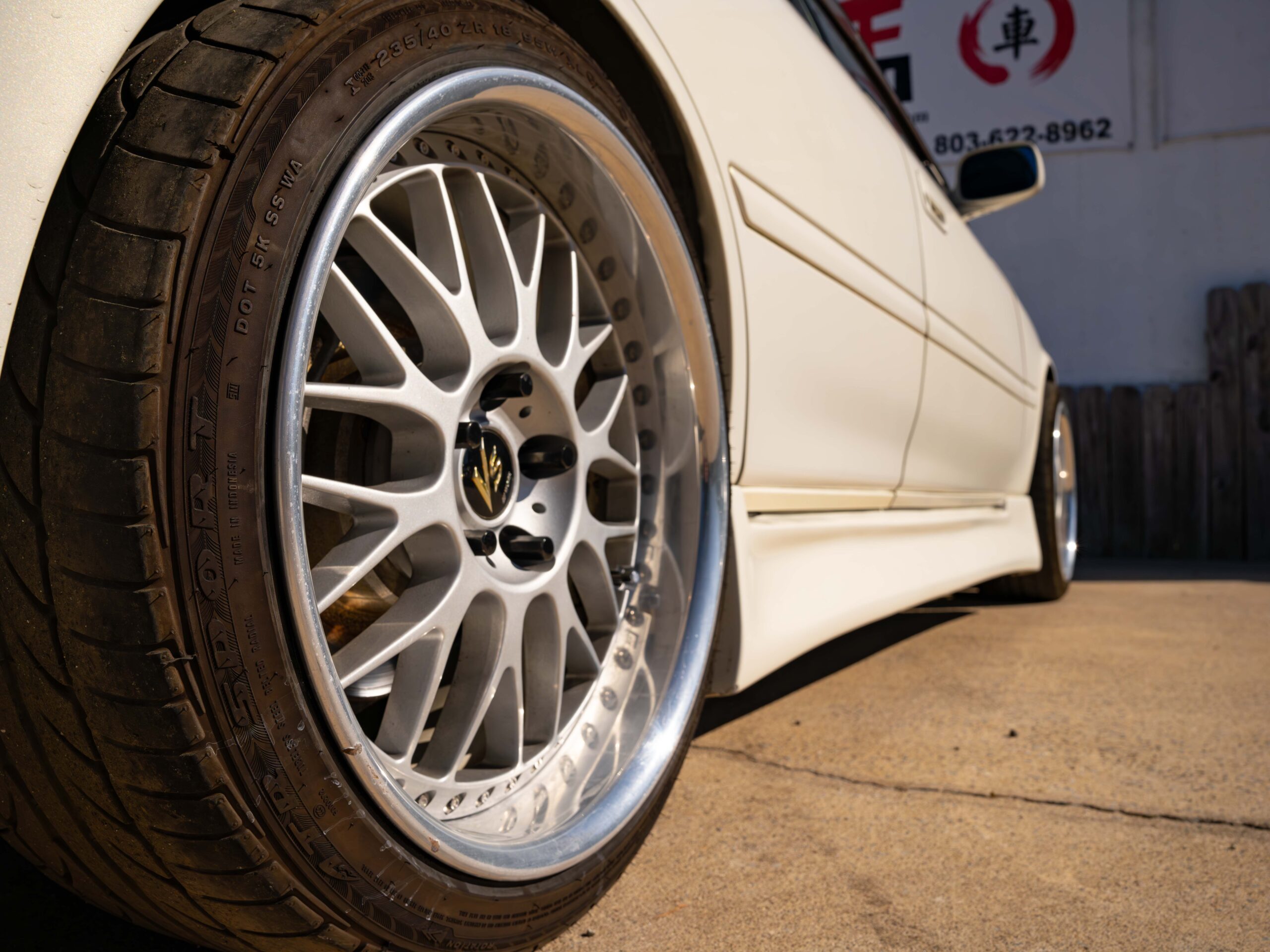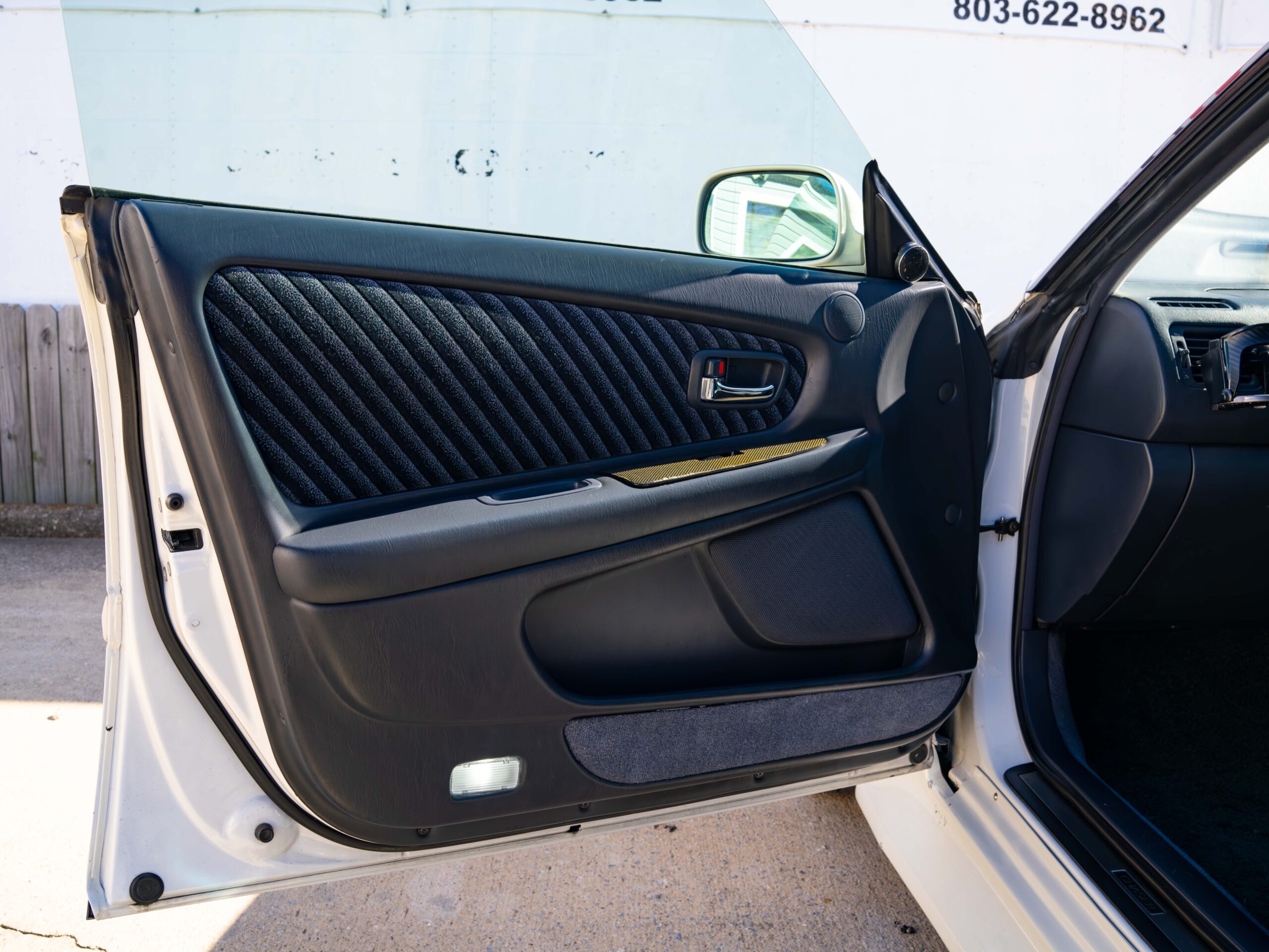 On the exterior, the white pearl paint is very clean and shines. The exterior features a very clean aero kit including side skirts, and front/rear bumpers. This Chaser is on super clean Work VS-XX wheels. The body of this Chaser is nice with no dents. Exterior imperfections include some small fiberglass chips on the aero kit.