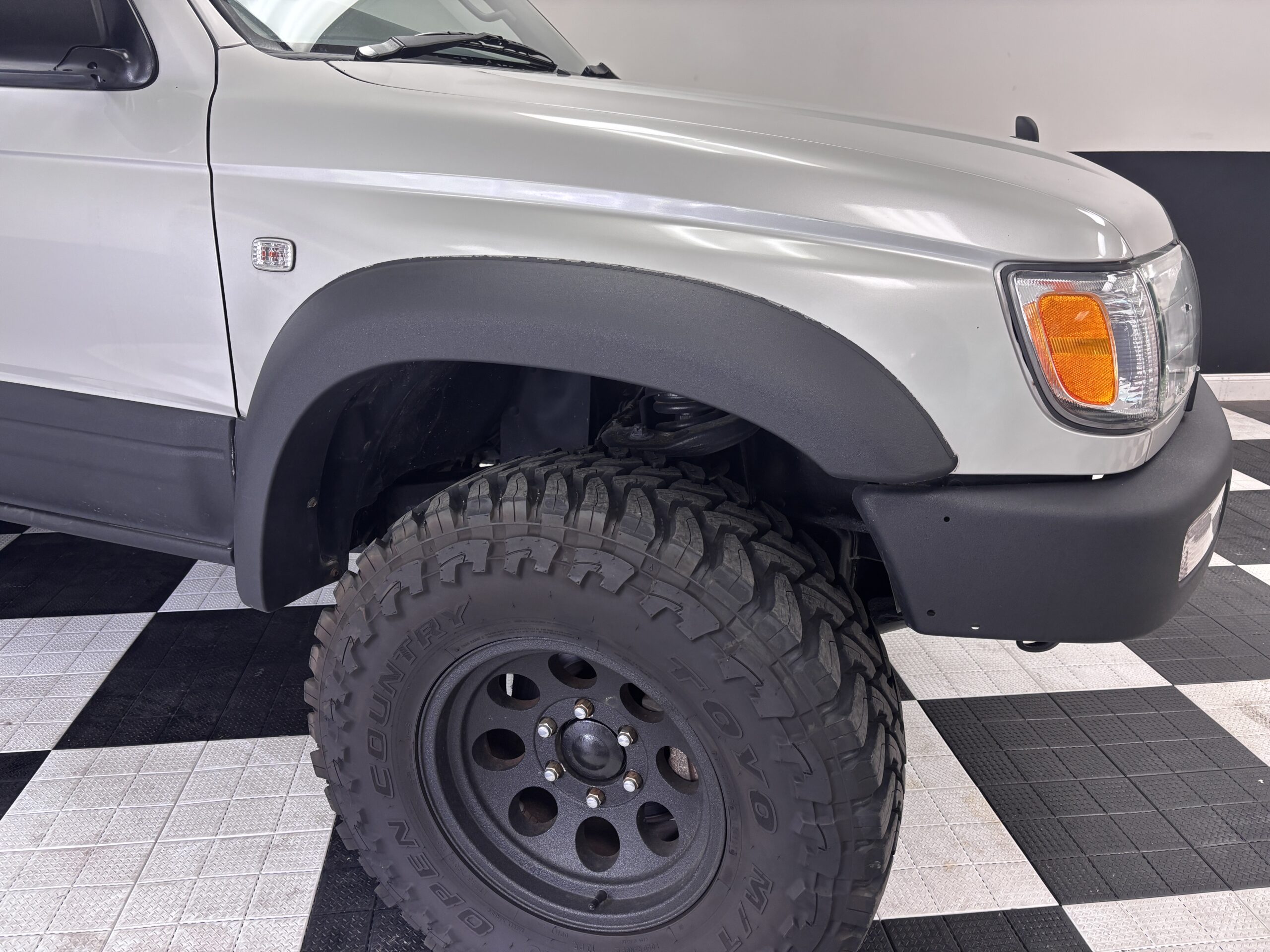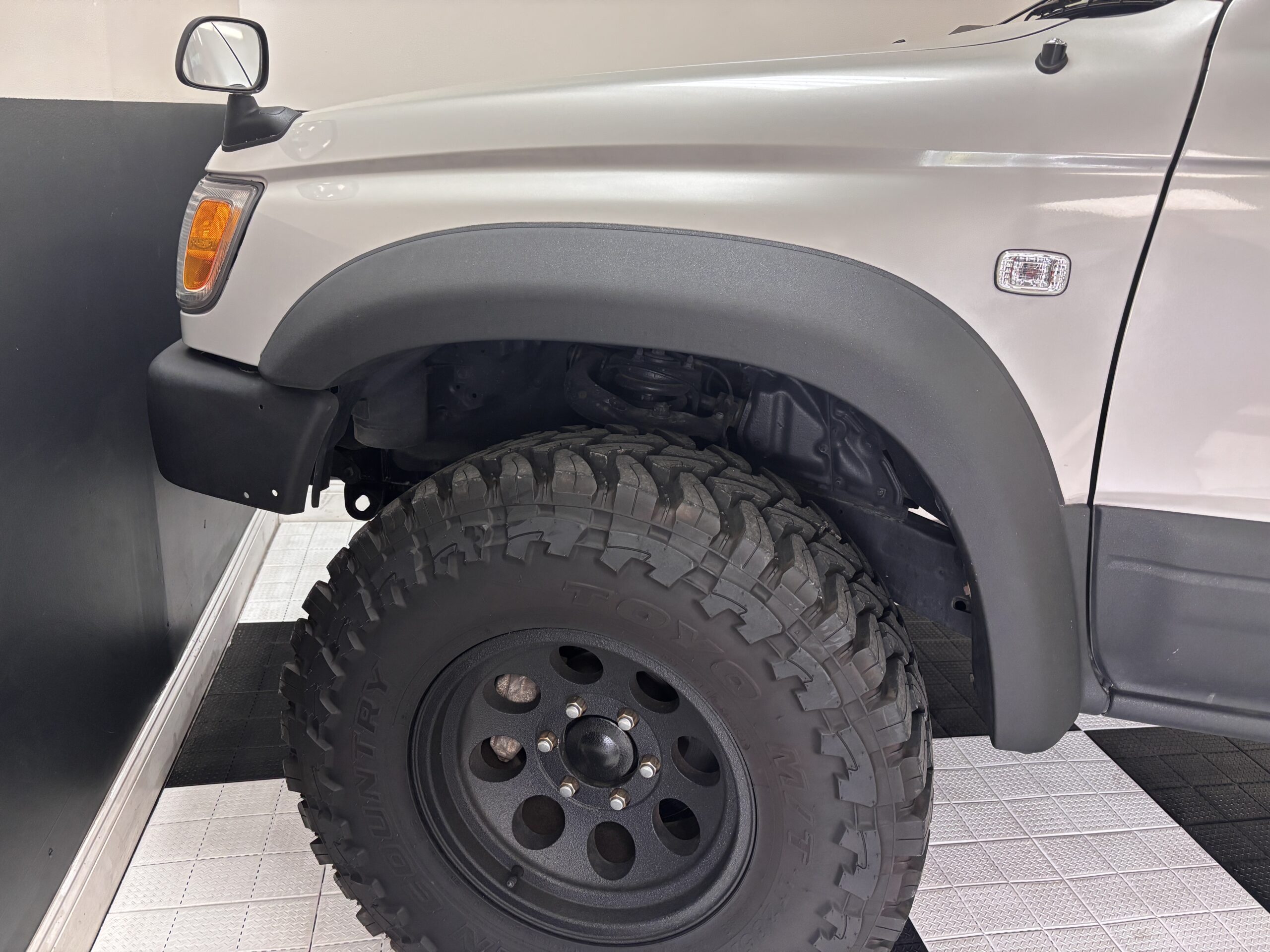 This 1996 Toyota Hilux Surf is equipped with a 3RZ-FE 4-cylinder engine mated to a 5-speed manual transmission. Aftermarket wheels with Toyo Open Country M-T tires as well as an aftermarket suspension lift kit. Interior features an aftermarket Carrozzeria head unit and Nardi steering wheel, as well as grey cloth interior.