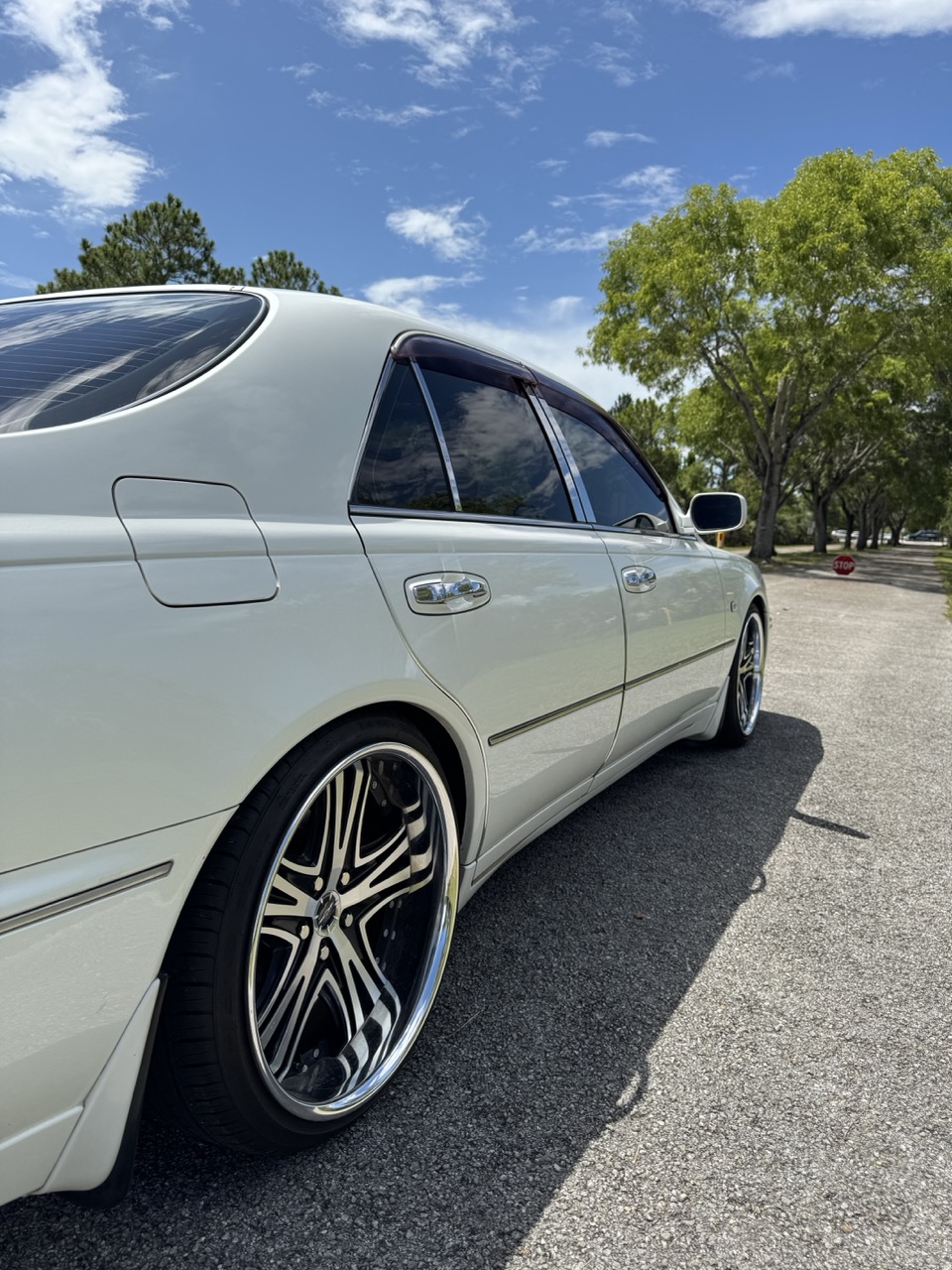 Visually, this Cima makes a bold impression thanks to its clean VIP styling and tasteful modifications. Sitting lowered on a set of stunning ENKEI AME 19″ VIP wheels, it commands attention without being overdone. The car’s ride height is just right, giving it an aggressive stance while maintaining ride comfort and daily drivability. These wheels not only enhance the appearance but also tie into the authentic VIP aesthetic that’s highly respected in JDM culture. Whether you’re pulling up to a car meet or cruising the highway, this Cima delivers presence and poise.