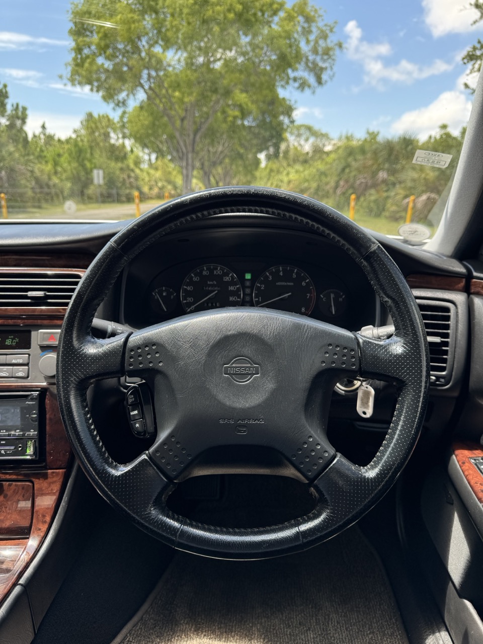 Step inside, and you’re greeted by a luxurious cabin that proudly reflects Japan’s executive class of the late ’90s. One of the standout touches is the set of JDM seat doilies — a rare factory accessory that preserves the seats while adding an unmistakably classic Japanese touch. The interior is spacious, quiet, and refined, making this Cima the perfect daily driver or weekend cruiser. Combined with right-hand-drive authenticity, this car turns every drive into a unique experience.