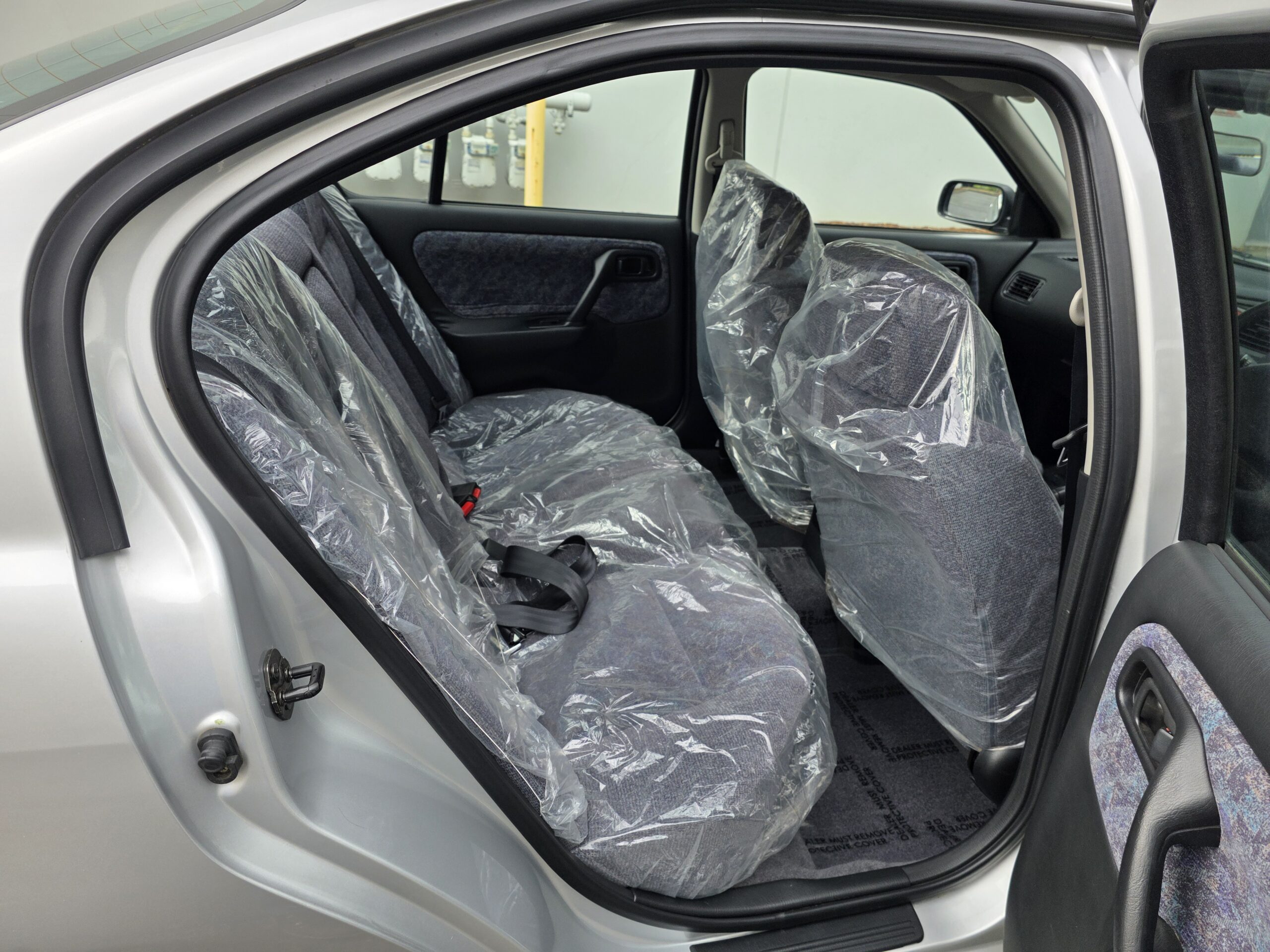 Has the orignal plastics on all the seats, expcept one section of the rear seat