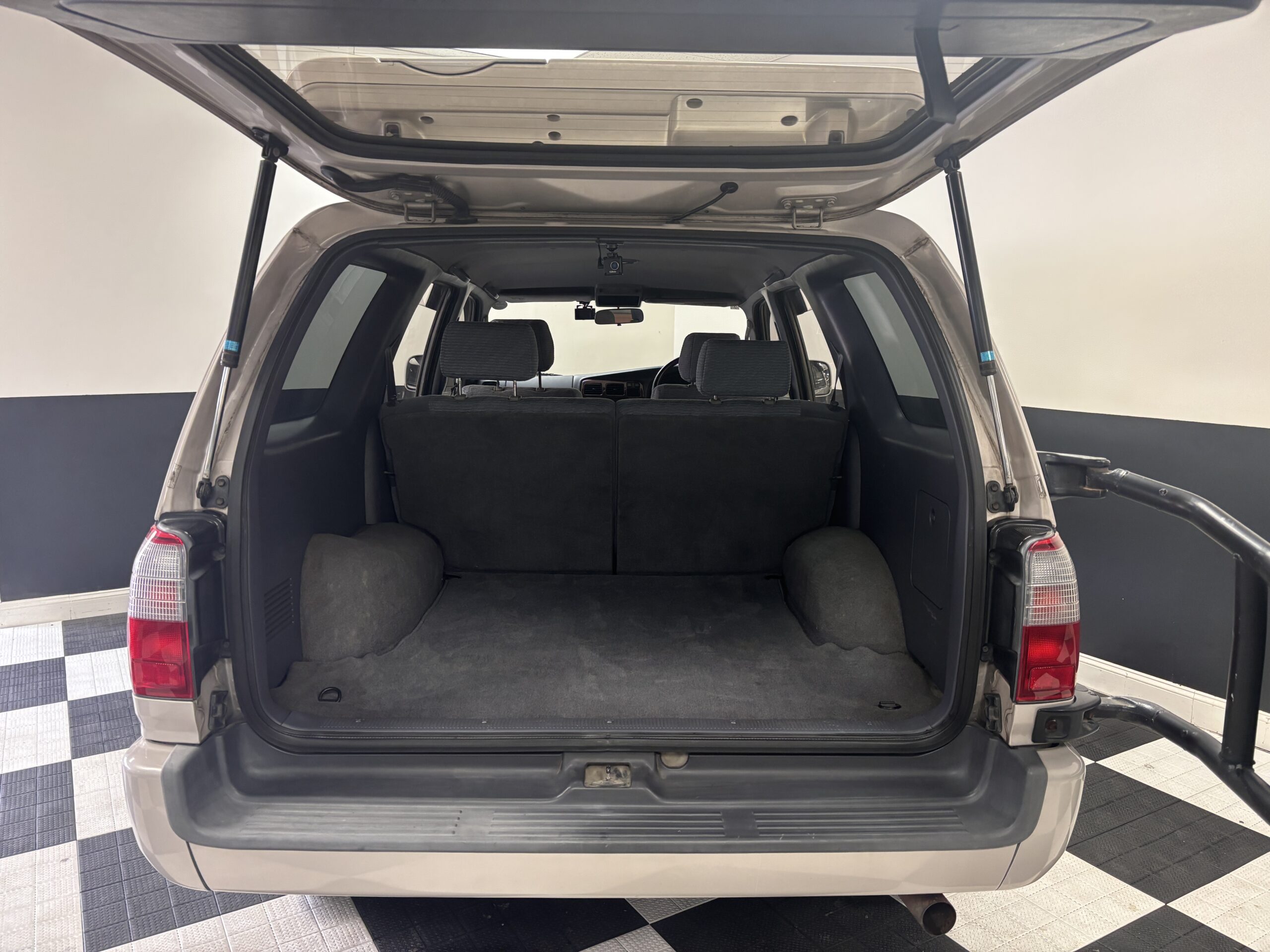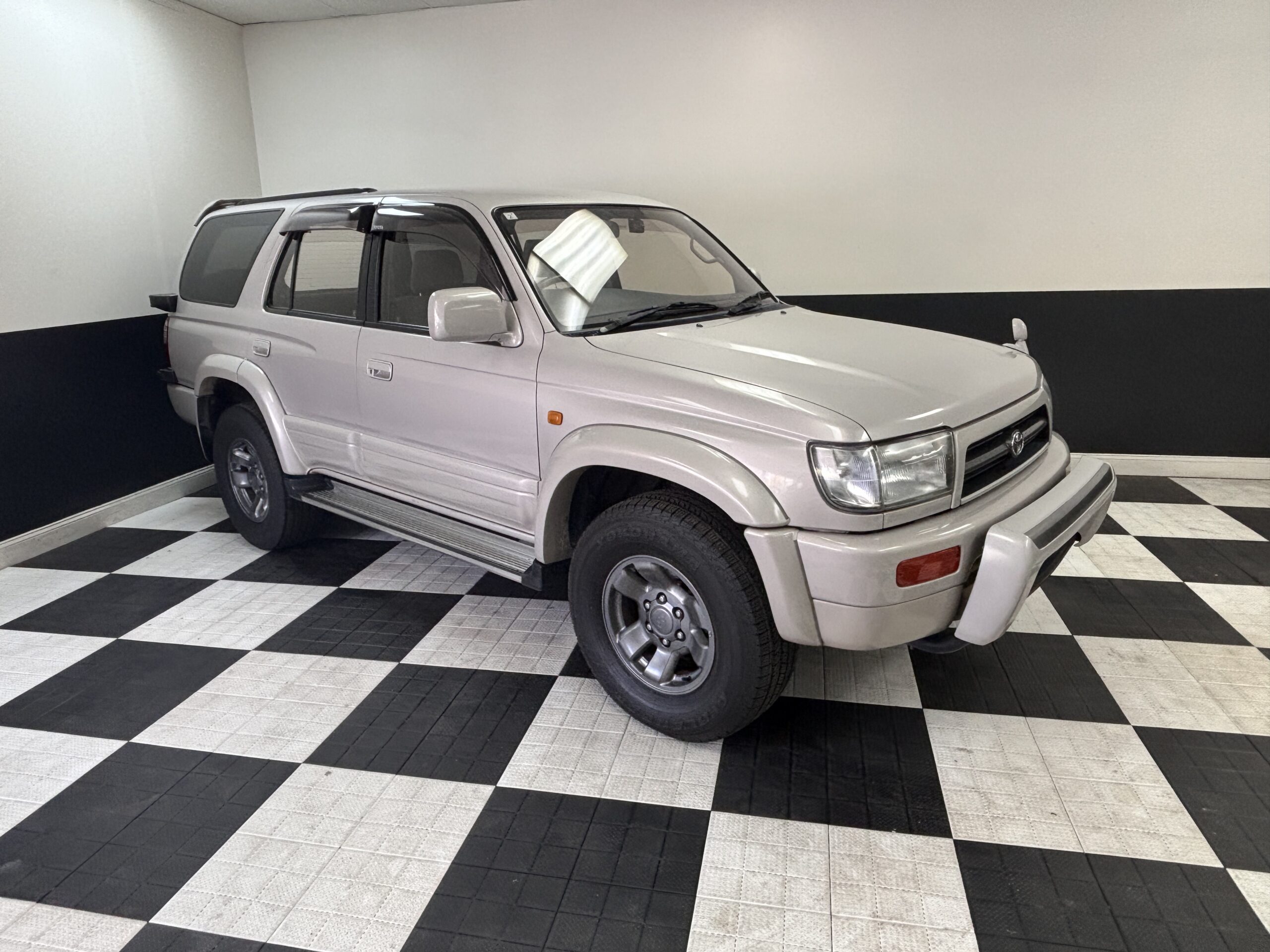This 1997 Toyota Hilux Surf is equipped with a 5VZ-FE V6 6-cylinder mated to a 4-speed automatic transmission. Interior features a factory Toyota head unit and a powered rear spoiler mirror as well as grey cloth interior.