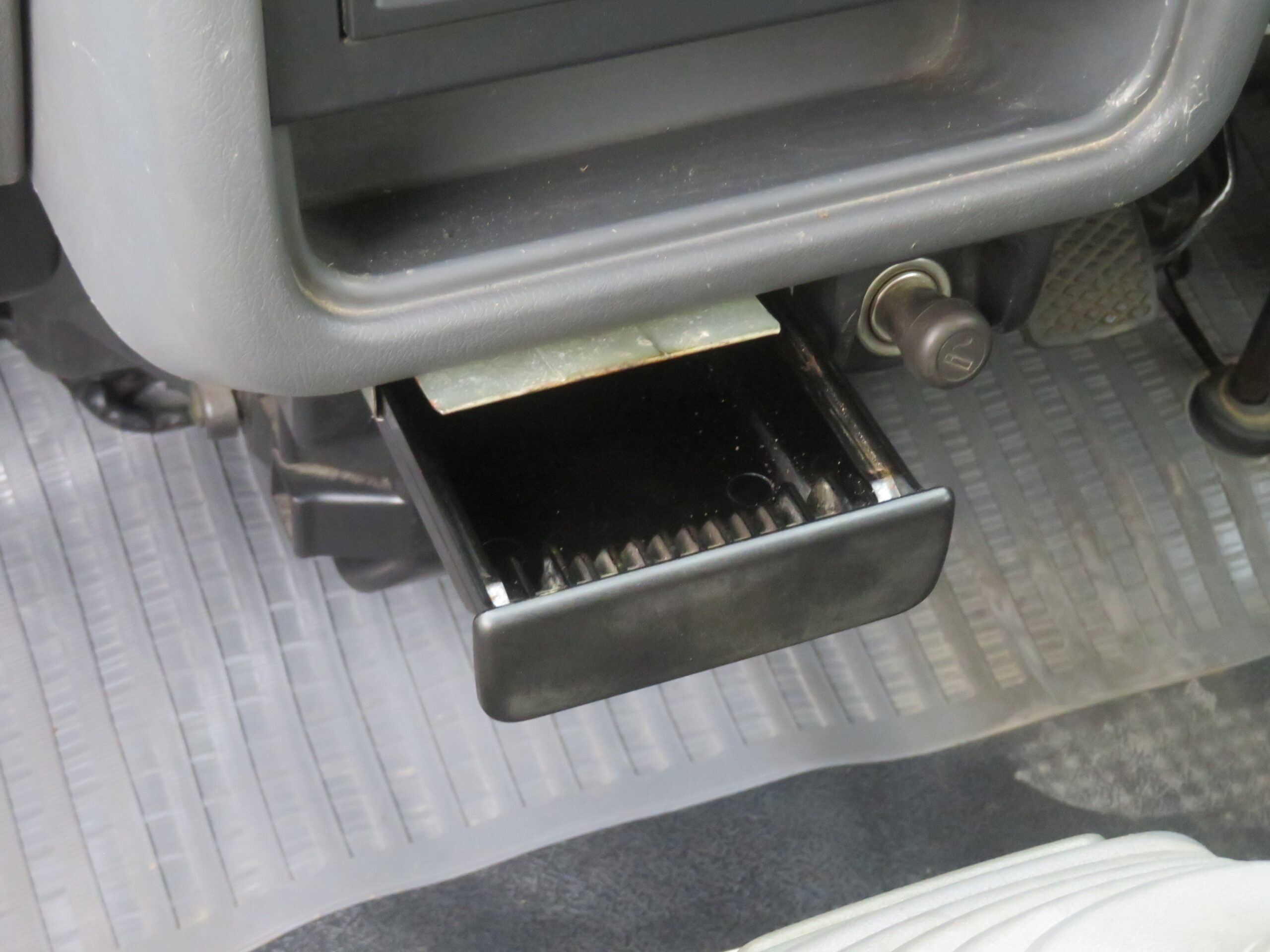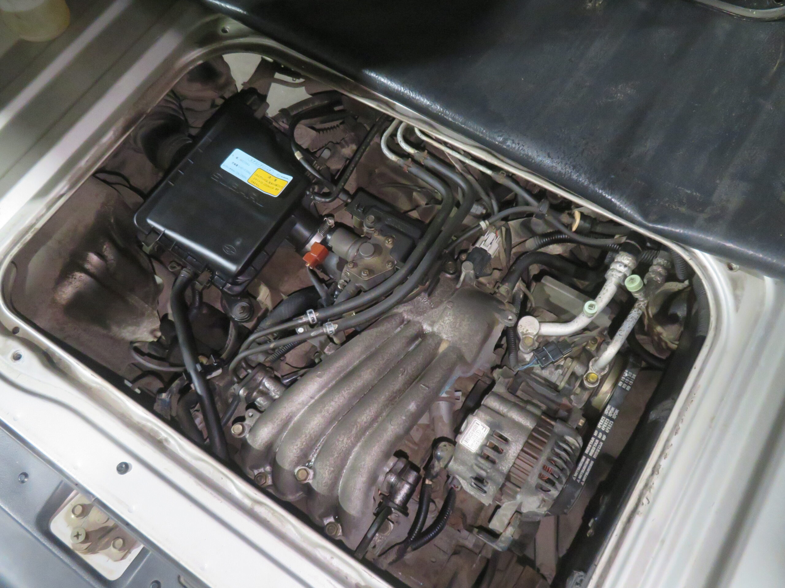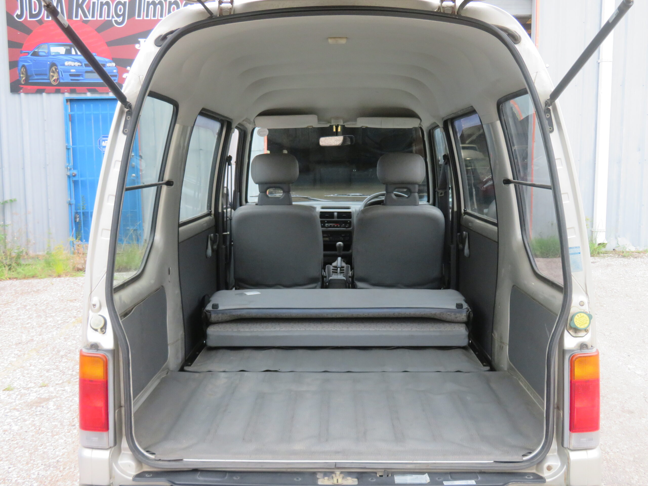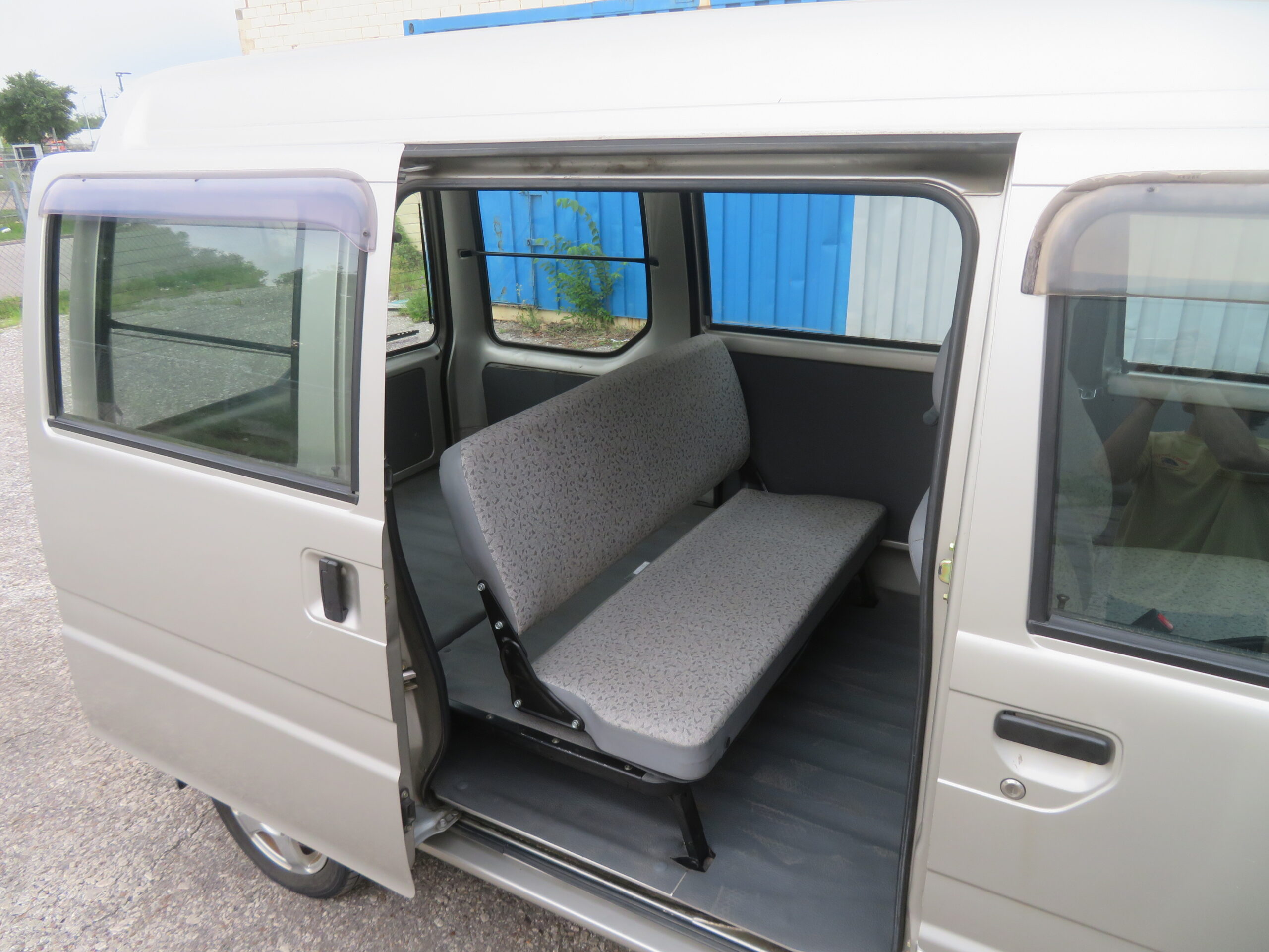 The Subaru Sambar Van is in good running condition. The engine starts right away, and the suspension is smooth and good. The manual transmission shifts smoothly into all gears. The radio is in working condition. However, the AC needs recharging, and the passenger side turn signal cover is missing.