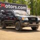 The exterior is in great shape, the black paint shines great. This Land Cruiser does have a few small scratches throughout the paint, but overall the body is in very good condition. This vehicles does have aftermarket wheels paired with A/T tires
