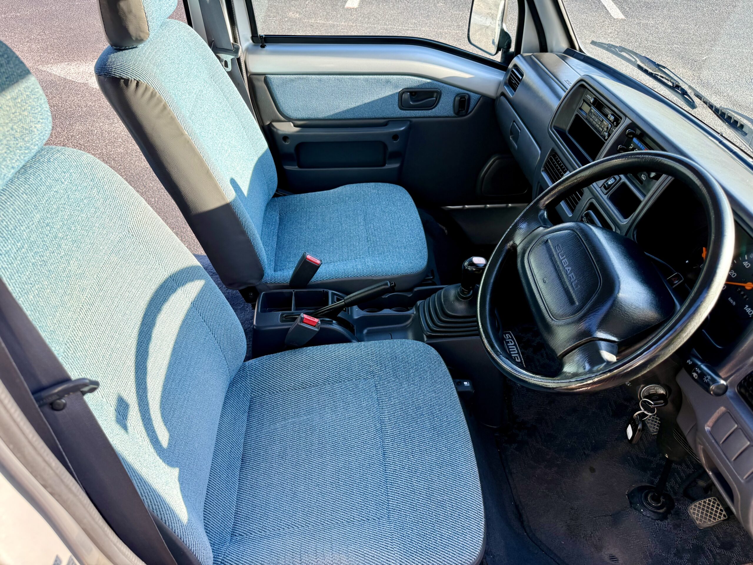 The Subaru Sambar is one of the most popular cars in the Kei Van segment. Despite its diminutive exterior dimensions, the Sambar offers a remarkably spacious interior. The rear seats can be folded flat, transforming the cargo area into a 6’ long cargo carrier. A sturdy roof rack further enhances its versatility. Also the Sambar demonstrates surprising agility in urban environments, capable of reaching speeds of 70 mph.