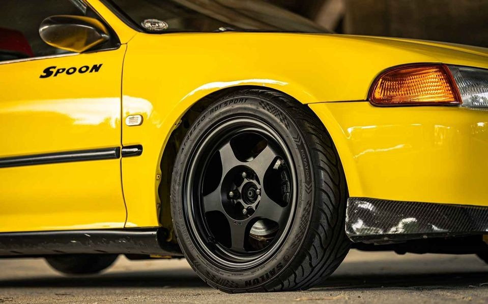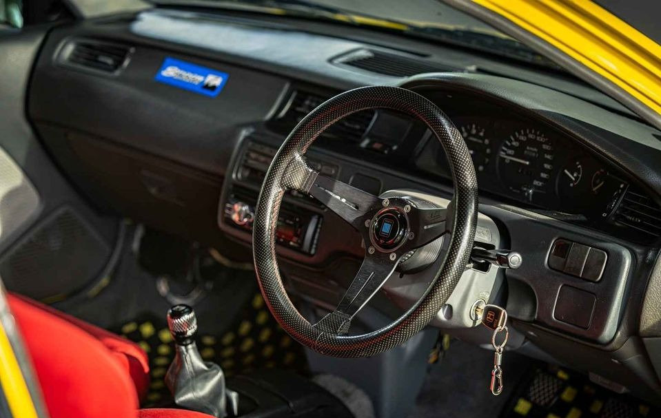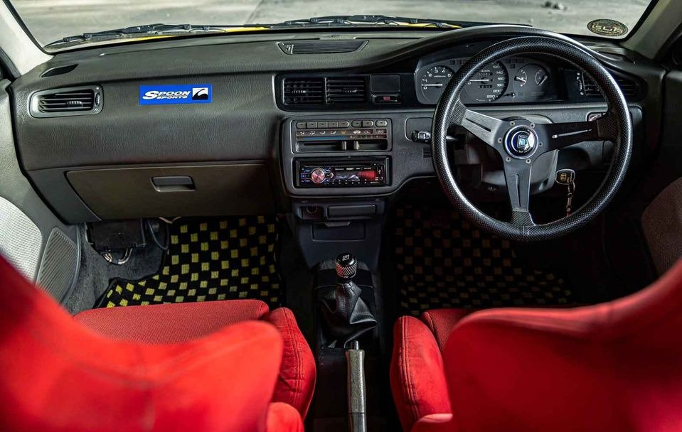 Wheels: Fitted with Spoon 15 7 35 wheels, complemented by soft tires sized 195/ 50 15, enhancing grip and overall performance for an exhilarating driving experience.