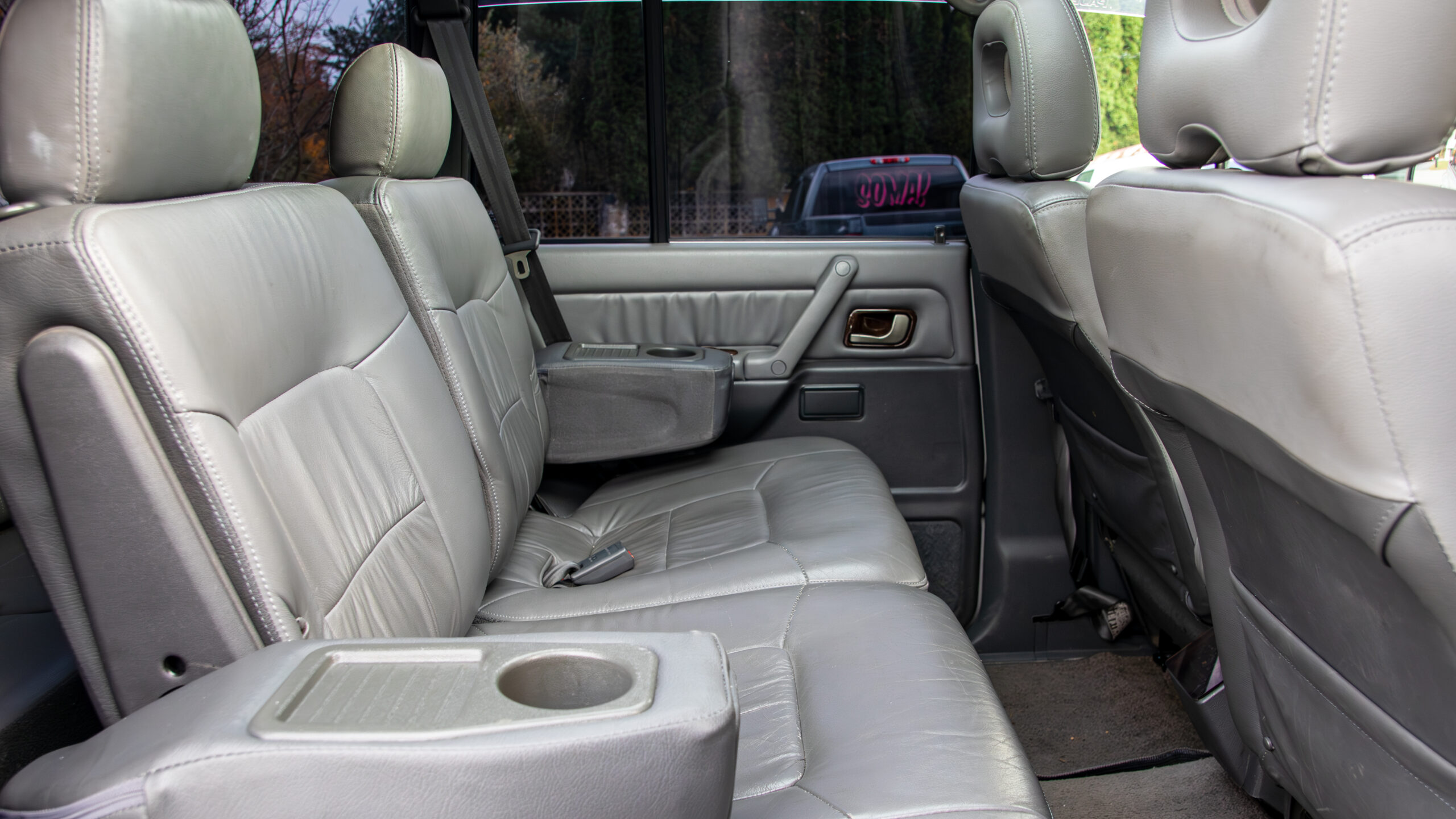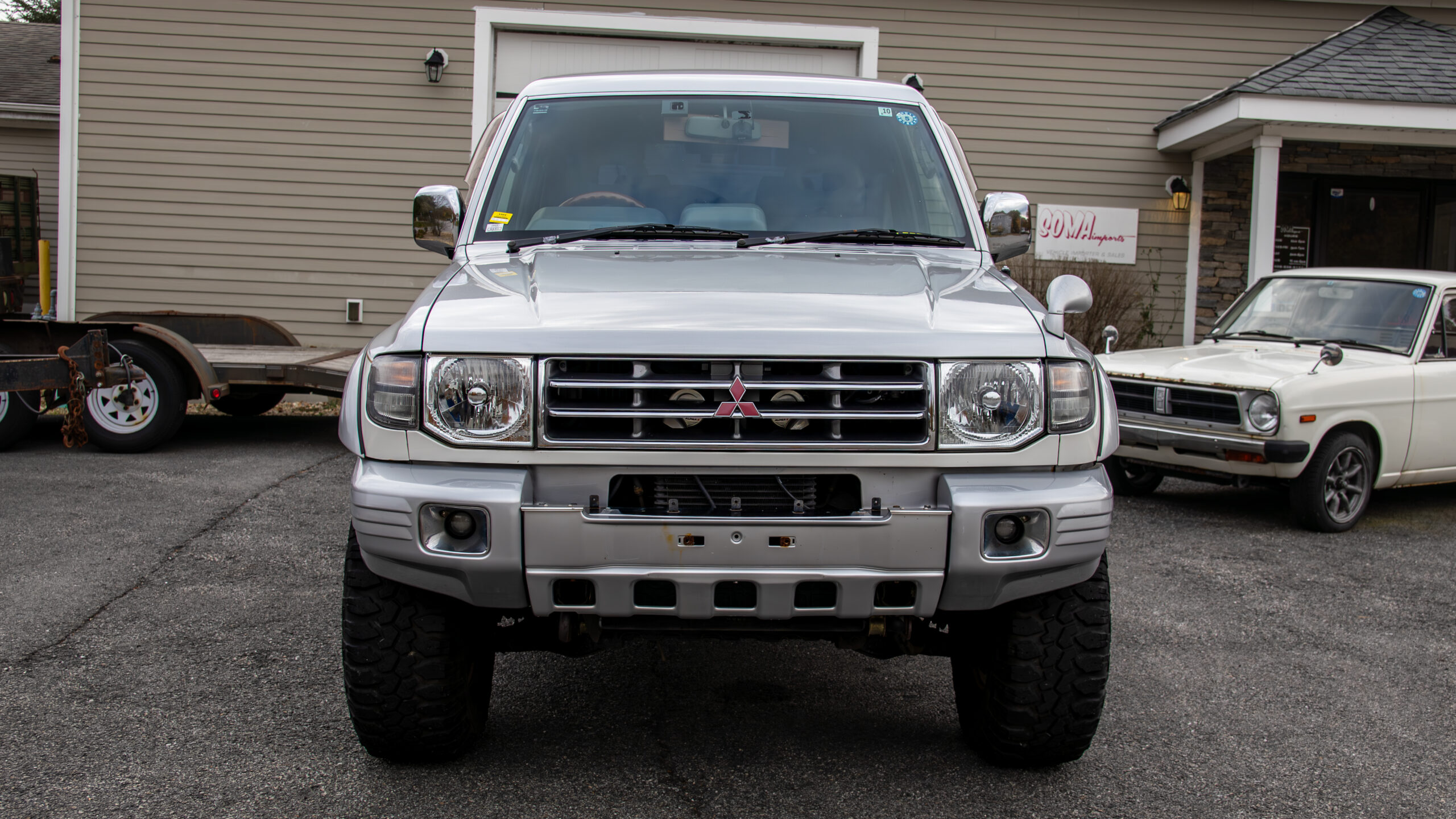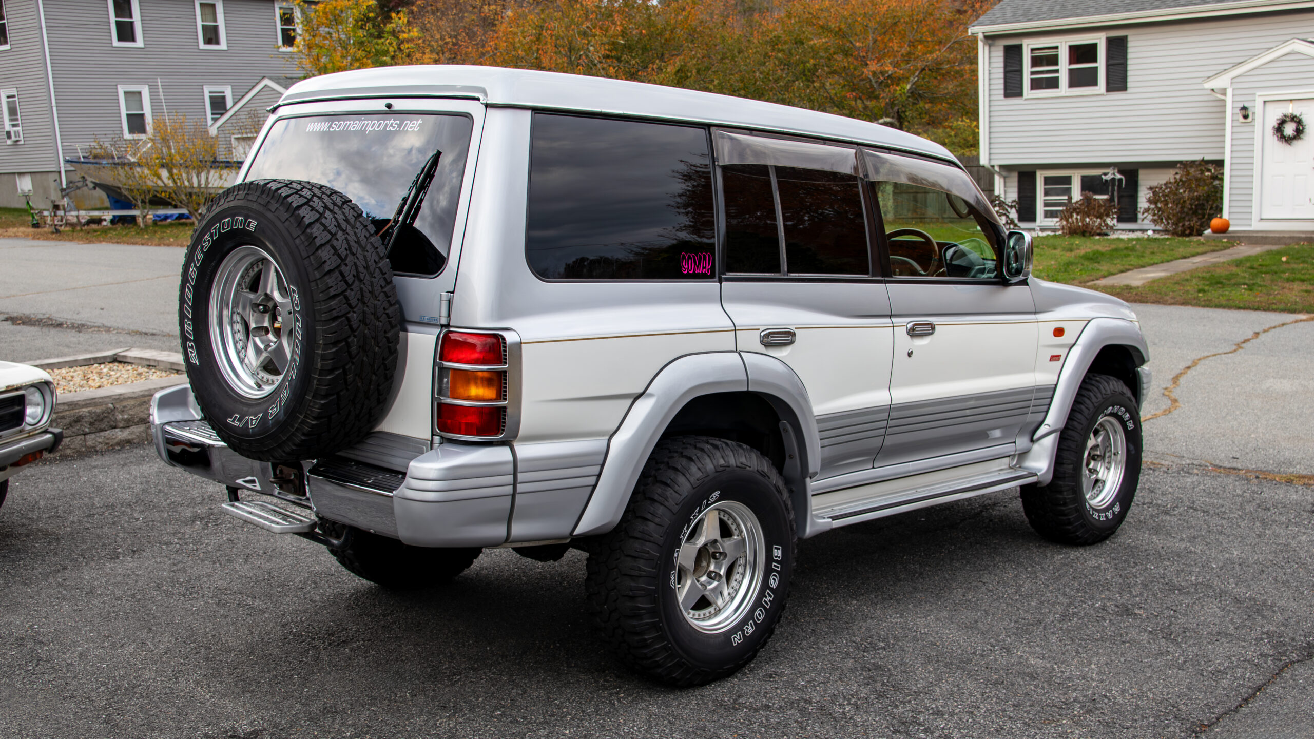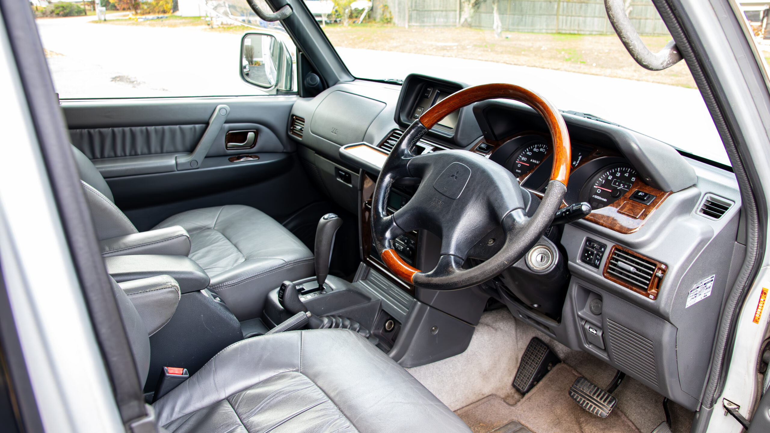 Here we have this beefy 98 Mitsubishi Pajero exceed wide body recently imported from Japan . This vehicle is a factory RHD, wide body (AKA 2.5 Blister fenders) just hitting 113k US miles that has been modified with Jaos Pajero over fenders to help fit the 33″ tires with rare Jaos 5 spoke aluminum wheels with matching 5th spare. Plush leather interior is very clean and comfortable. 3rd row seating that can be stowed vertically. Seating for up to 7. Large panoramic center sunroof. Fully loaded including power folding mirrors with heated front seats and rear zone separate climate control. Heat and AC work as requested.Optional TV/ navigation screen.GDI (GAS DIRECT INJECTED) 3.5L V6, 4×4, AT, locking center dif. Recently serviced and ready to go. MA titled!