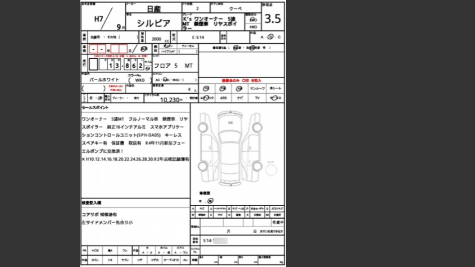 SPEC: One owner, 5-speed MT, No smoking inside the car, rear spoiler , 16 INCH aluminum wheels, car media system Carrozzeria has remote control by smartphone, spare key , pump changed.